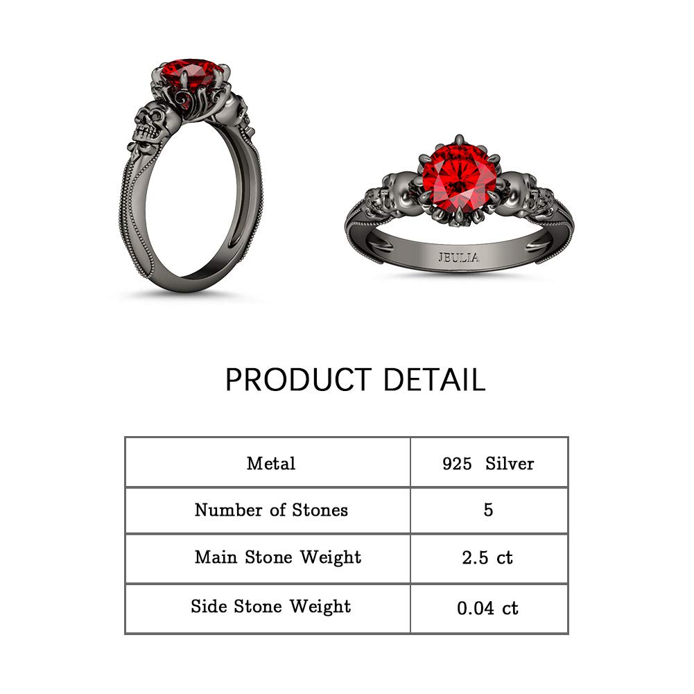 Jeulia 2.5 ct Black Tone Wedding Ring Women 925 Sterling Silver Skull Eternity Rings Round Cut Diamond Ruby Rings Promise Anniversary Romantic Jewelry Gift