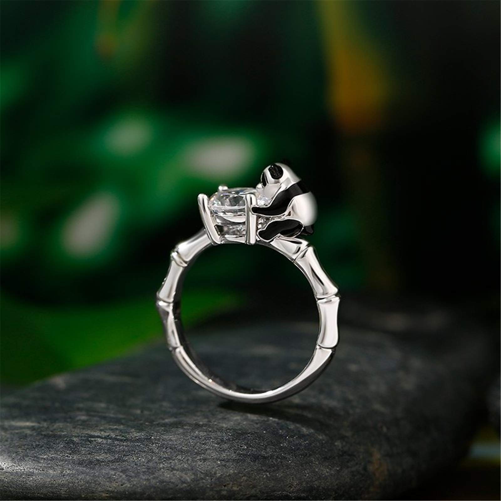 - âż ăINSPIRATIONă:While the Panda is one of the world's most iconic species, known and loved across the world, this peaceful, bamboo-eating member of the bear family is so cute and lovely. Crafted in sterling silver, this ring in Hug Me collection features a shimmering round cut stone hugged by a cute panda. Panda is also a symbol of good luck and positive thoughts. You can't train a real panda to wrap around your finger, but you can have this ring.