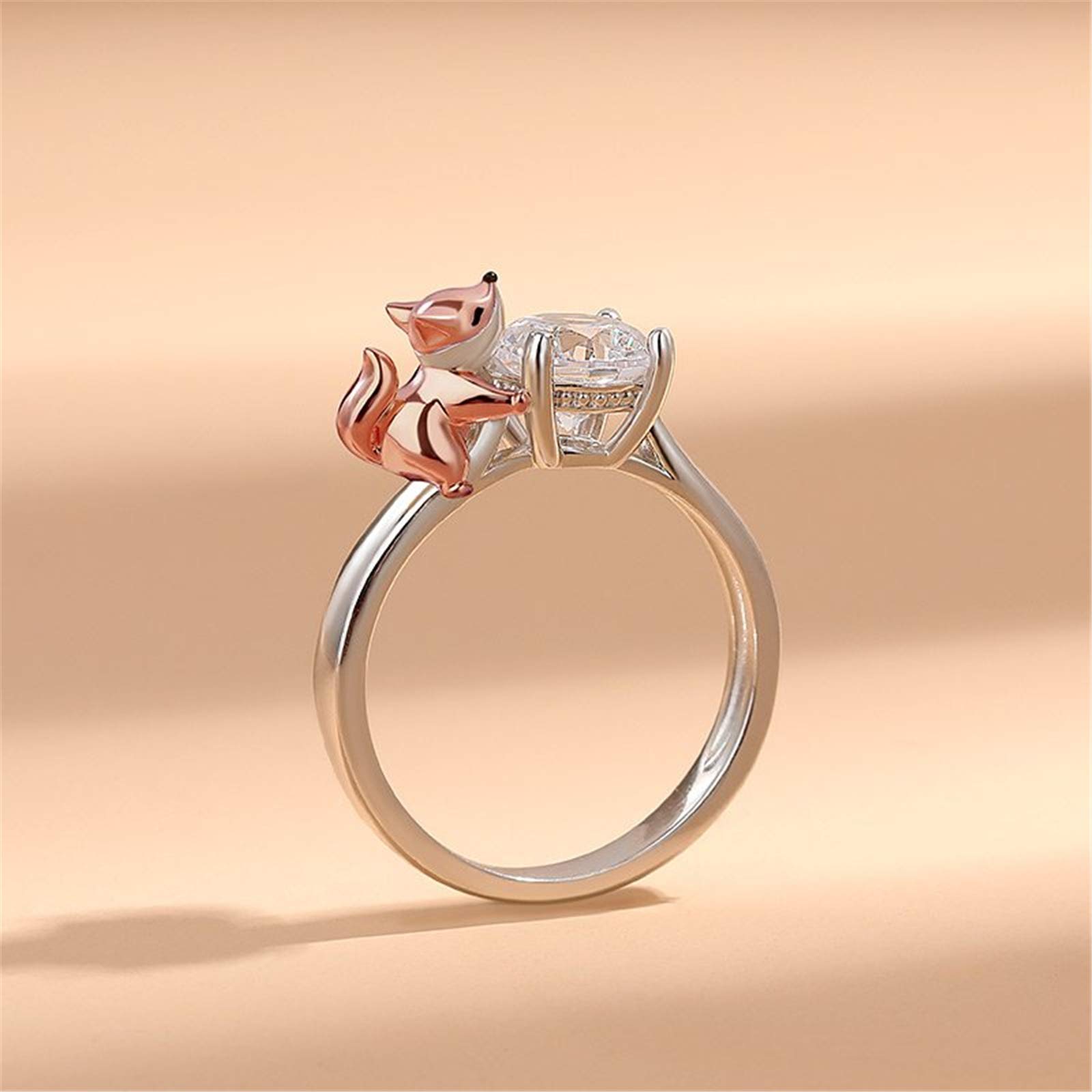 - âż ăINSPIRATIONă:Buffed to a brilliant luster, this ring in Hug Mecollection is a captivating statement of style. Crafted in sterling silver, it features a shimmering round cut stone hugged by a cute fox. This cute fox is so cute with his fluffy rose gold tail, and adorable face. Would make a great gift for anyone who loves these mysterious and majestic creatures.