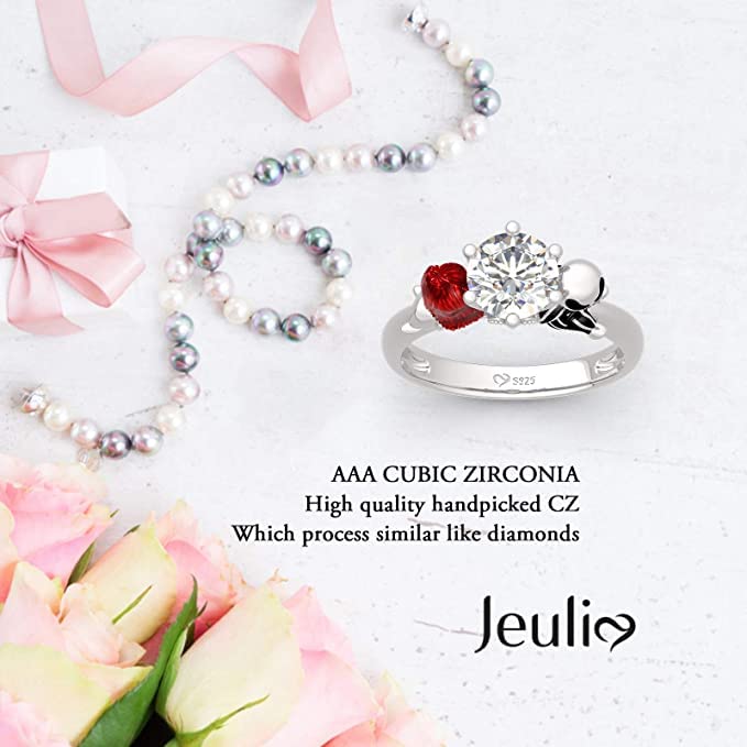 Jeulia Hug Me Magic of Love Skull Couple Round Cut Sterling Silver Ring for Women Wife Girlfriend Engagement Wedding Anniversary Christmas Birthday With Jewelry Box