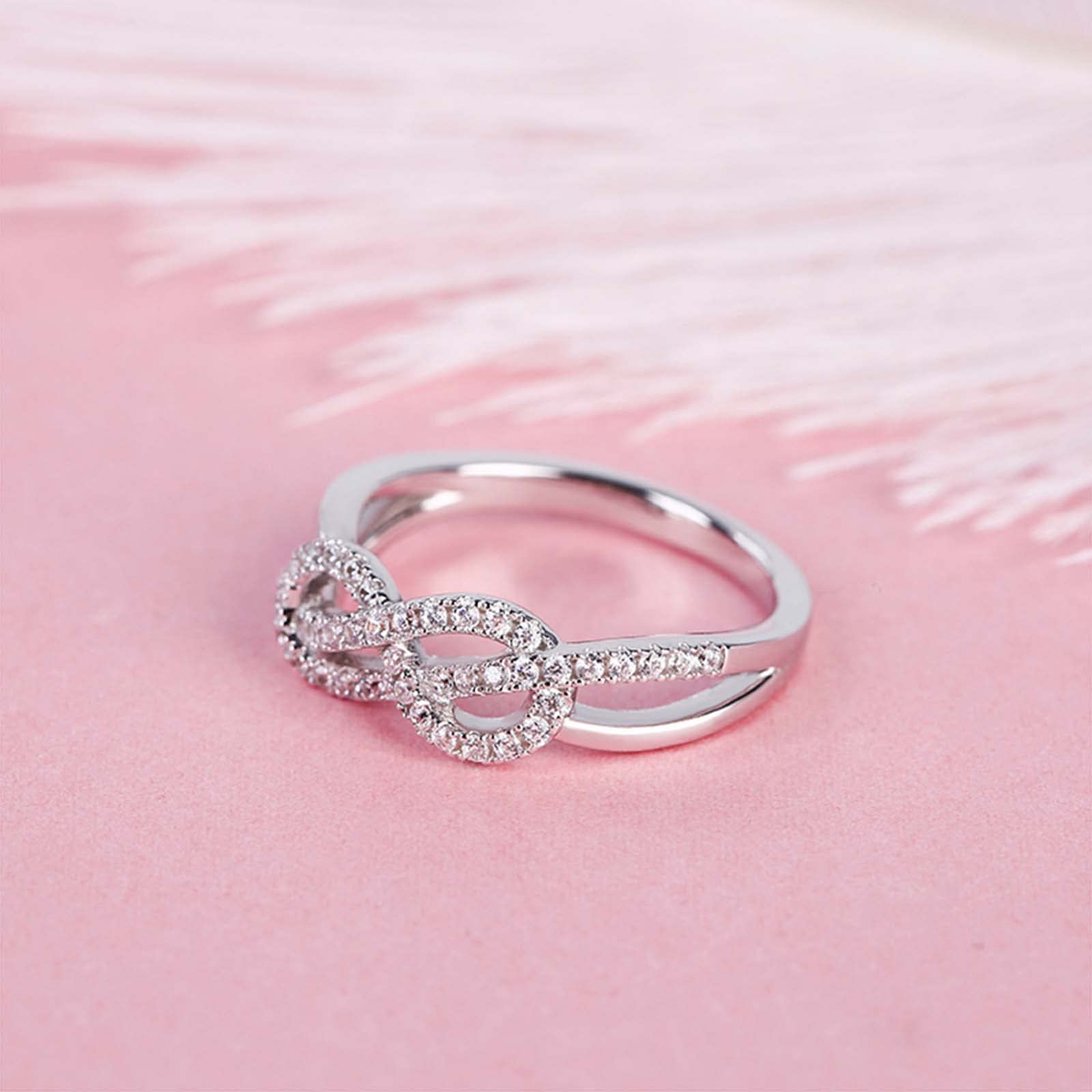 - âż ăINSPIRATIONă: Surprise the one you love with a ring that says you'll love her forever. Fashioned in sleek sterling silver, stone-lined ribbons sweep and swirl into an elegant double infinity knot. This charming look says it all - nothing more need be said. A meaningful look she's certain to adore, this ring is destined to become a treasured favorite.