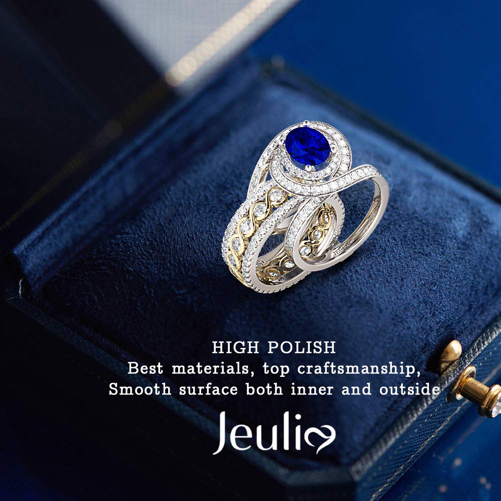 - ăMaterial Qualityă: The Jeulia eternity solitaire engagement ring set for women with Top quality 925 sterling silver. The sterling silver engagement ring is inlaid with large blue 3.2 carat primary stone and 5.79 carat round white side stones. It is very shinning and sparking under the sunshine or light. This ring have perfect polishing and exquisite side details, it is an appropriate rings for sensitive skin, no need to be worry about it will fade or let your finger become green andalso don't w
