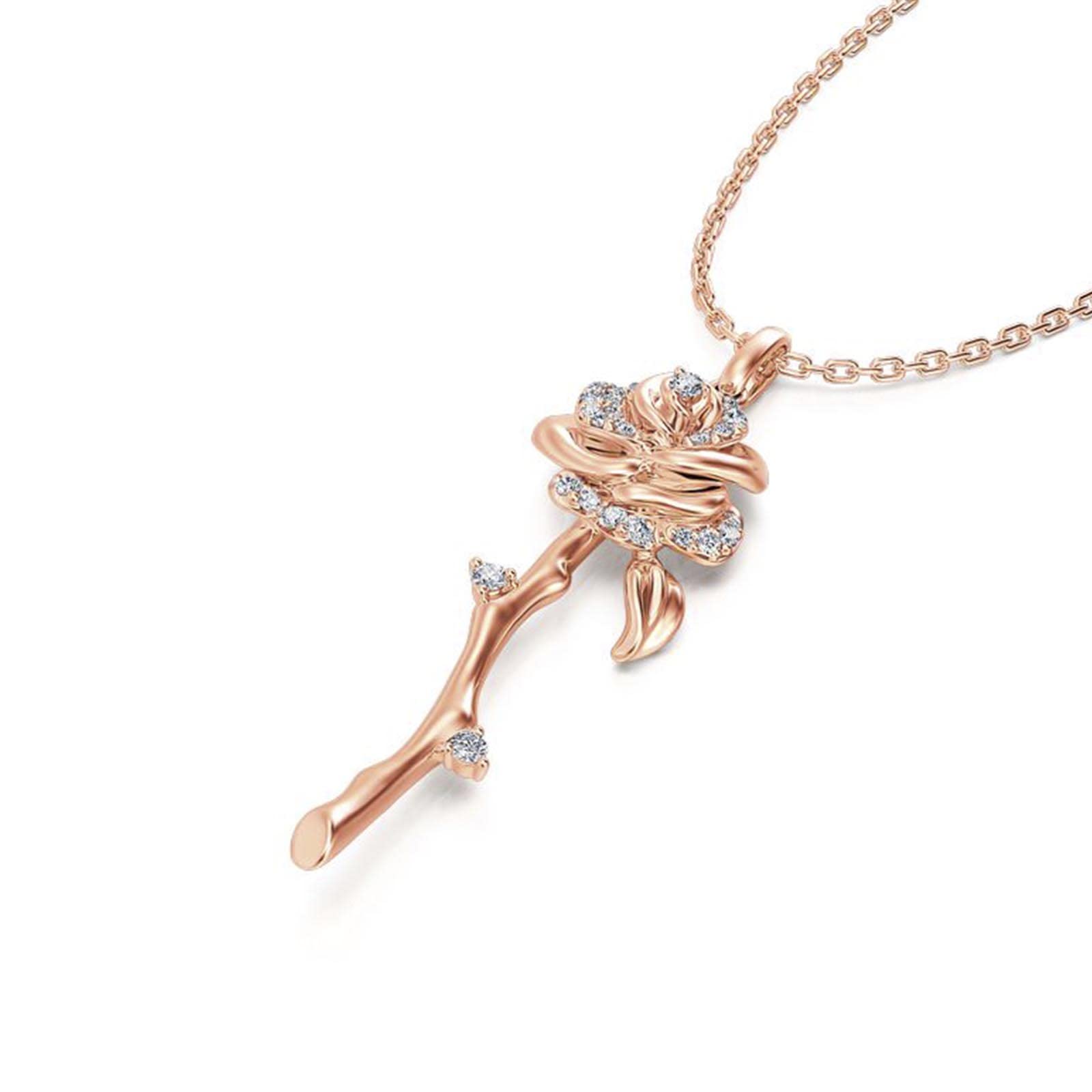 - âăInspirationăïŒAround the world, the rose is one of the most universal flowers used to express love. This exquisite pendant features white round stones set in a flower design in gleaming rose gold-tone sterling silver. Grad this perfect chance and speak up your love to someone you cherish with this romantic and beautiful necklace! Wherever she goes, this necklace is a sweet reminder of your love.